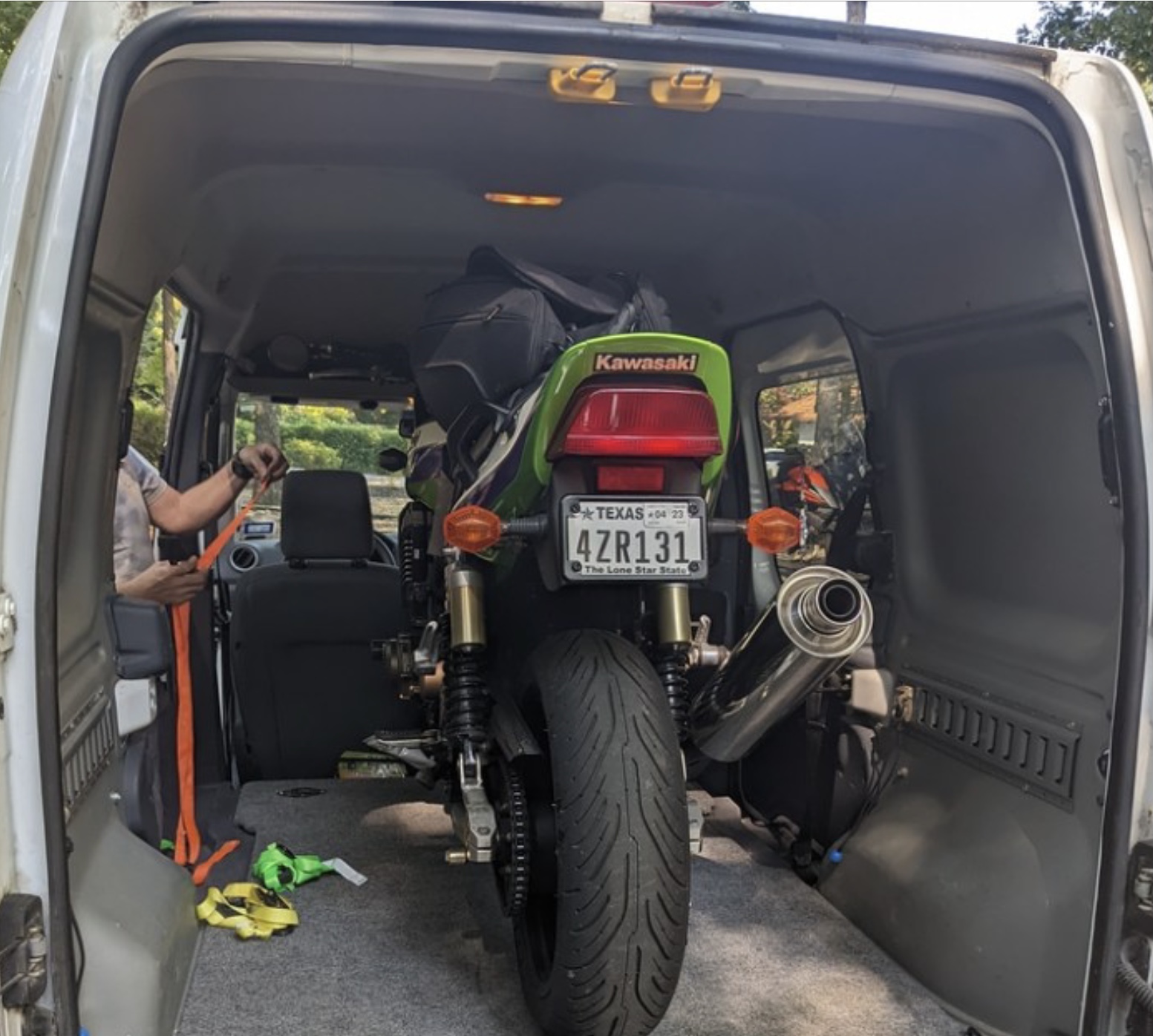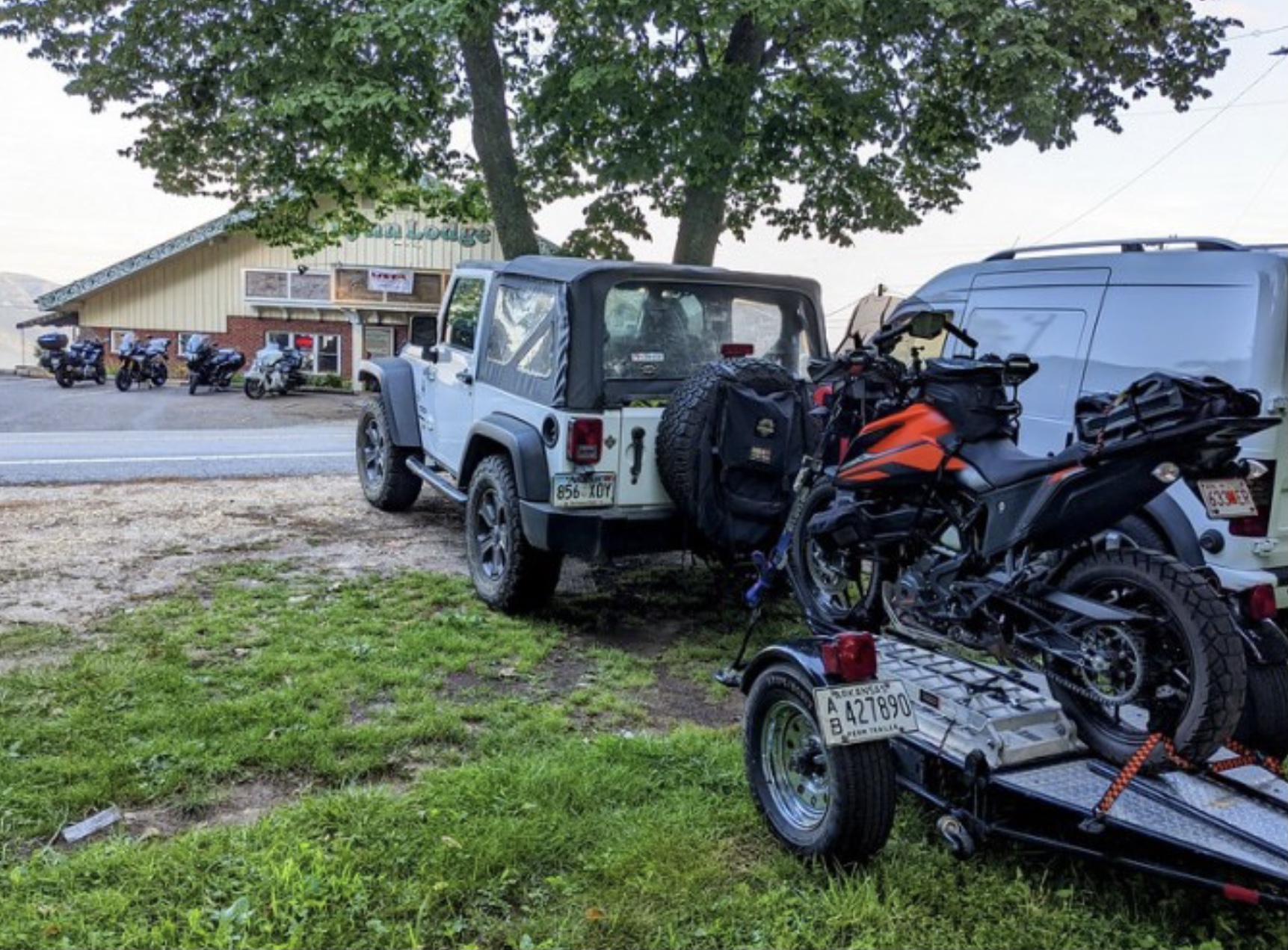 Bob and I have different ways of getting our machines to the rally. I load the KTM up on my Kendon trailer and my Jeep pulls it with no trouble to the event. Bob on the other hand has a small transit van that he loads his beautiful Z1200 into. It is a little harder to load and it squeezes in the back with a good 1/2 inch to spare. Both solutions get the job done. The bikes are ready to ride, and life is good.