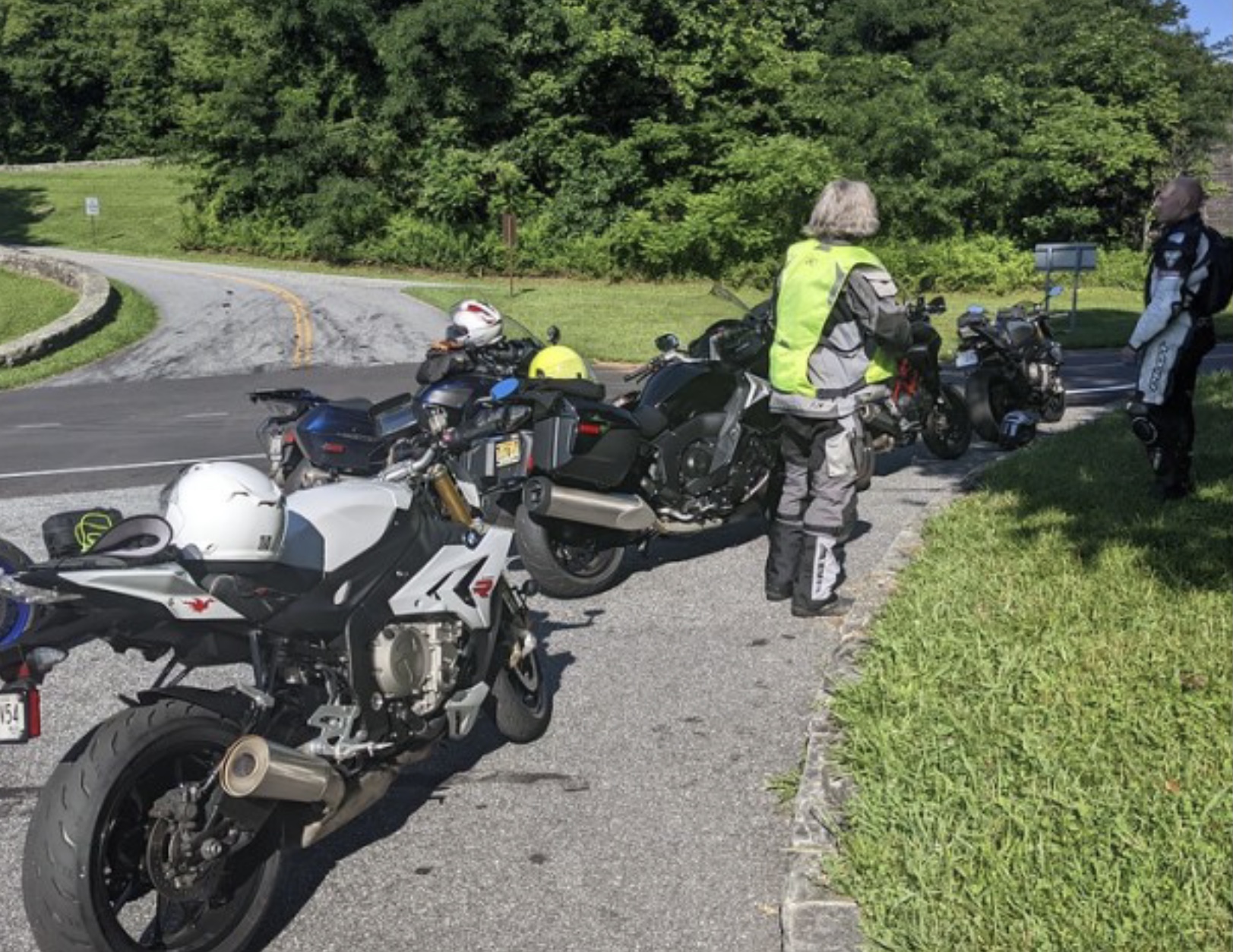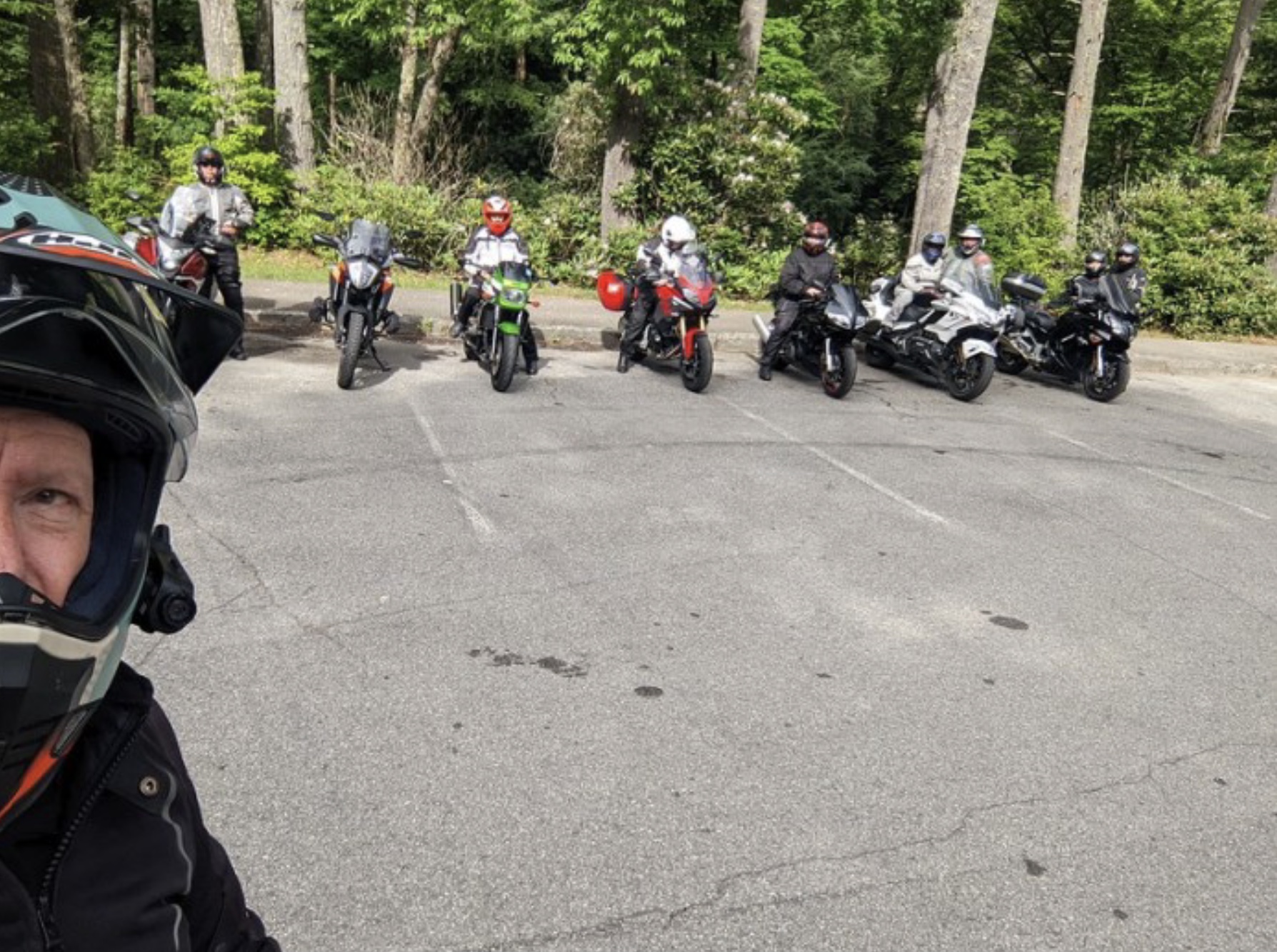 Just a short break from all the twisty roads. Norm is ready to go as always! Fun times!