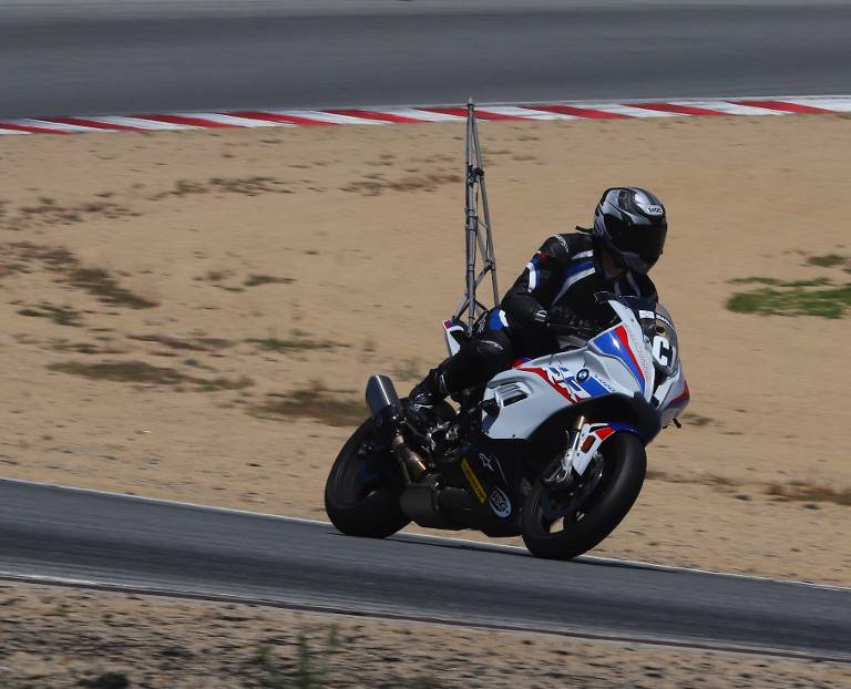 Another unique CSS training aid that comes with the two-day camp is the video bike, an S 1000 RR outfitted with a video camera mounted above and behind the rider. Students take one of these bikes out several times during the program creating a visual record of their riding technique. Later, a coach critiques the video with the student and then leaves them with a copy to take home.