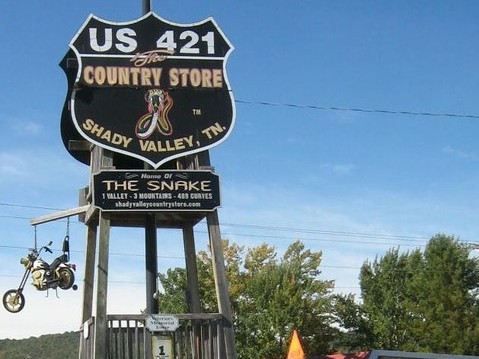 Take a breather through Shady Valley. Maybe stop for a picture under the sign announcing “The Snake” at the country store where US-421 intersects TN-91.
