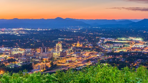 Roanoke VA at dusk. Photo courtesy of the City of Roanoke.