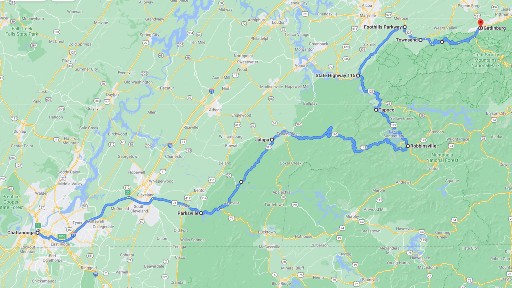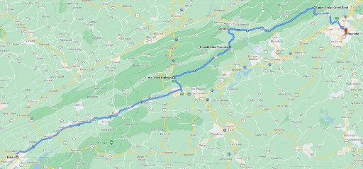 Day 3B – Fast Route to Roanoke Bristol TN 148 2h 19m Roanoke VA