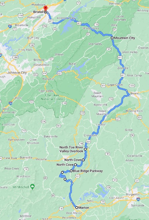 Day 3B – Off-highway to Roanoke Bristol TN 177 3h 46m Roanoke VA