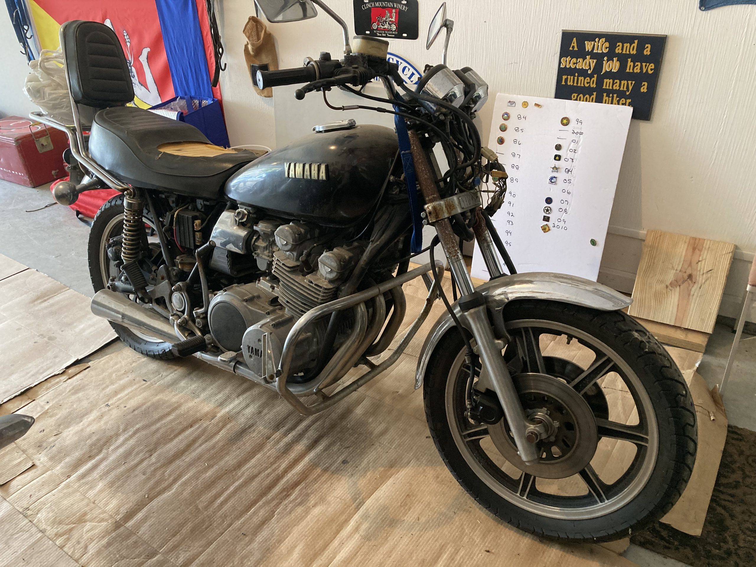 Anyway, I started looking for a bike. My 1st place to look was on Facebook Market Place. It seems to me that the bikes there fall into 2 categories. The first category are the bikes that are like new and are priced way over valued. I also found these same bikes listed on CraigsList. None of those bikes are going to fit under the $1000 purchase price limit. The 2nd category is more up the ally. Old Universal Japanese Motorcycles (UJMs) that were nice back in the day but are really ratty now. 99% of them don’t run and haven’t been run for years. 75% of them don’t have a title either. Now that’s going to be a problem. Since I want to ride the bike and not just build it, it is going to be important that I have it registered and insured. Not having a title is going to add one major hurdle to the actual riding part of the equation. I willingly admit that my younger self wouldn’t have worried much about that and would have just popped a plate from a different bike onto the new one. But I’m an older and wiser (I hope) person now and wish to keep most things legal. But in reality, I don’t plan to keep the bike forever and know that selling a bike with a title is always easier than selling one with out. So I quickly decided to eliminate any bikes that didn’t come with clean titles. This eliminated most bikes that were older and cheaper (2 prerequisites) in FB Marketplace. I did check on a few, and either got there to late or for some reason didn’t feel right. No worries, I’ve got months. Something will come up. After a couple of weeks of checking the marketplace several times a day, I had a flash of brilliance (or was it sanity? it’s so hard to tell sometimes), why not check with your MSTA buddies? It seems like lots of them either have project bikes or know someone that does. Somebody there is bound to have a lead at least. So that’s what I did. I went to the MSTA Group Page on FaceBook and posted up what I was doing and what I was looking for. Almost immediately I started to get results. Suggestions and leads started coming in. People started sharing bikes they knew of in their area, or reached out to other groups and found leads there. I think they call this “networking”, but I just call it one more benefit of MSTA Membership. A few days later Don Payne, a good friend and MSTA member from Indiana, informed me that he had a bike sitting his garage that I might want to consider. He had started on the bike several years ago for his nephew, but his nephew wasn’t interested in it anymore. It was one of those “ran when parked” bikes, but the parking had taken place 22 years ago! Anyway he sent me a picture and we made arrangements for me to drive to his house south of Indy and pick up the bike.