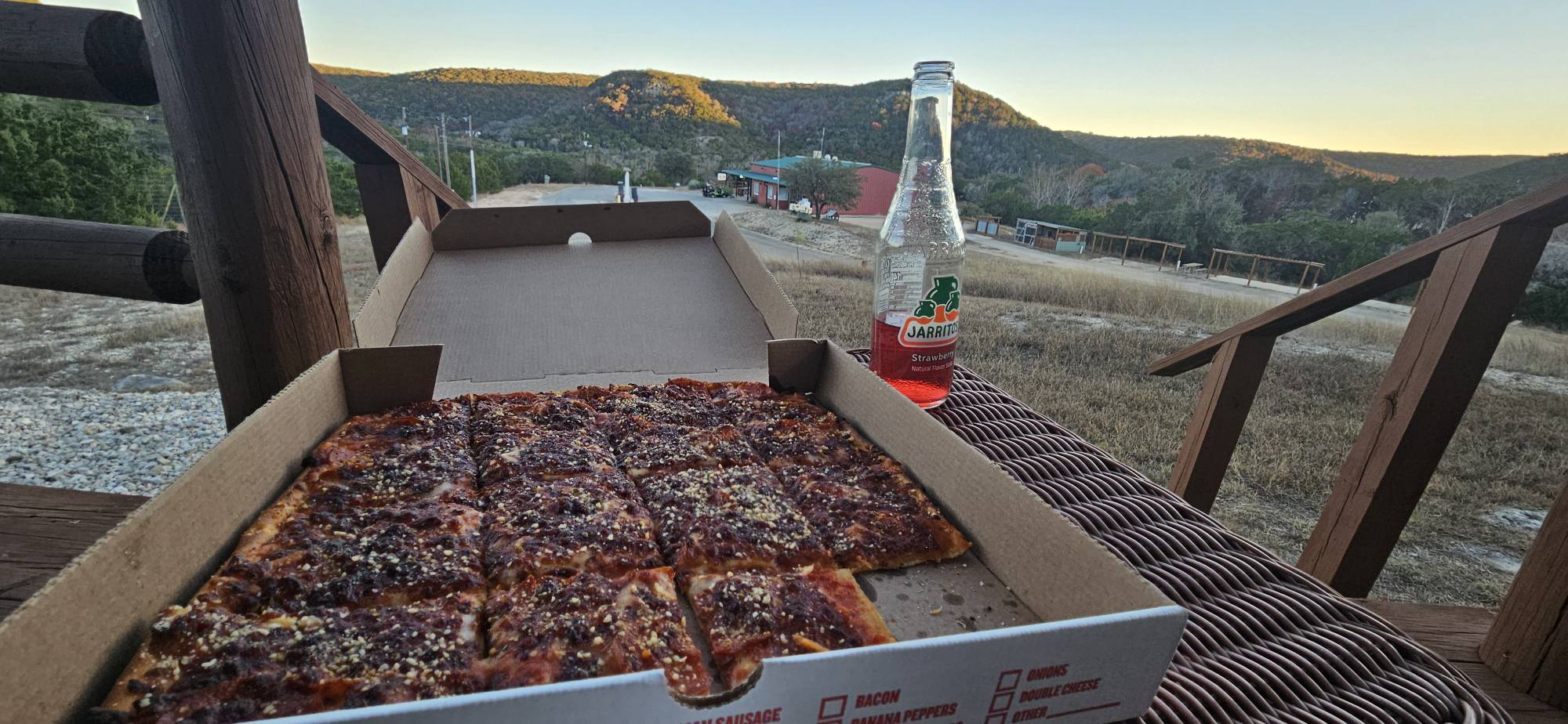 Dinner for 1. Hunt bros tasts the same everyhere, but the Jarritos is better on Texas.