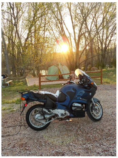 I felt a little like the Omega Man as I rode through the park – lots of campsites and picnic grounds with only a small camper in sight. The skies cleared, wind died and a full moon came up just as I finished setting up camp. Mars, Jupiter and the space station were clearly visible overhead. More good karma.