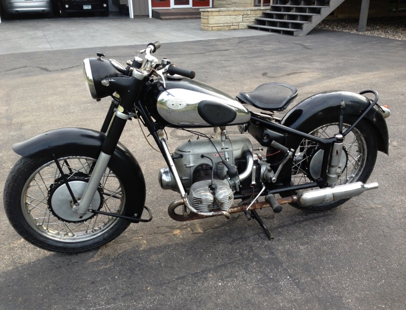 Later that spring, the Aultz bought an old 1956 Zundapp Citation. This was a 450cc twin that was made by Horex. It was a piece of junk and required constant fiddling, but the Aultz and I had fun riding it around Cincinnati. The defining moment came when The Aultz and I were rounding a curve on an interstate exit and hit a dip. The Zundapp didn’t have folding footpegs, so the rider’s footpeg hit the pavement and the bike jumped to the side about 8 inches. The Aultz just leaned into the turn and kept the throttle on like nothing had happened. That was the day bike fever got unbearable.