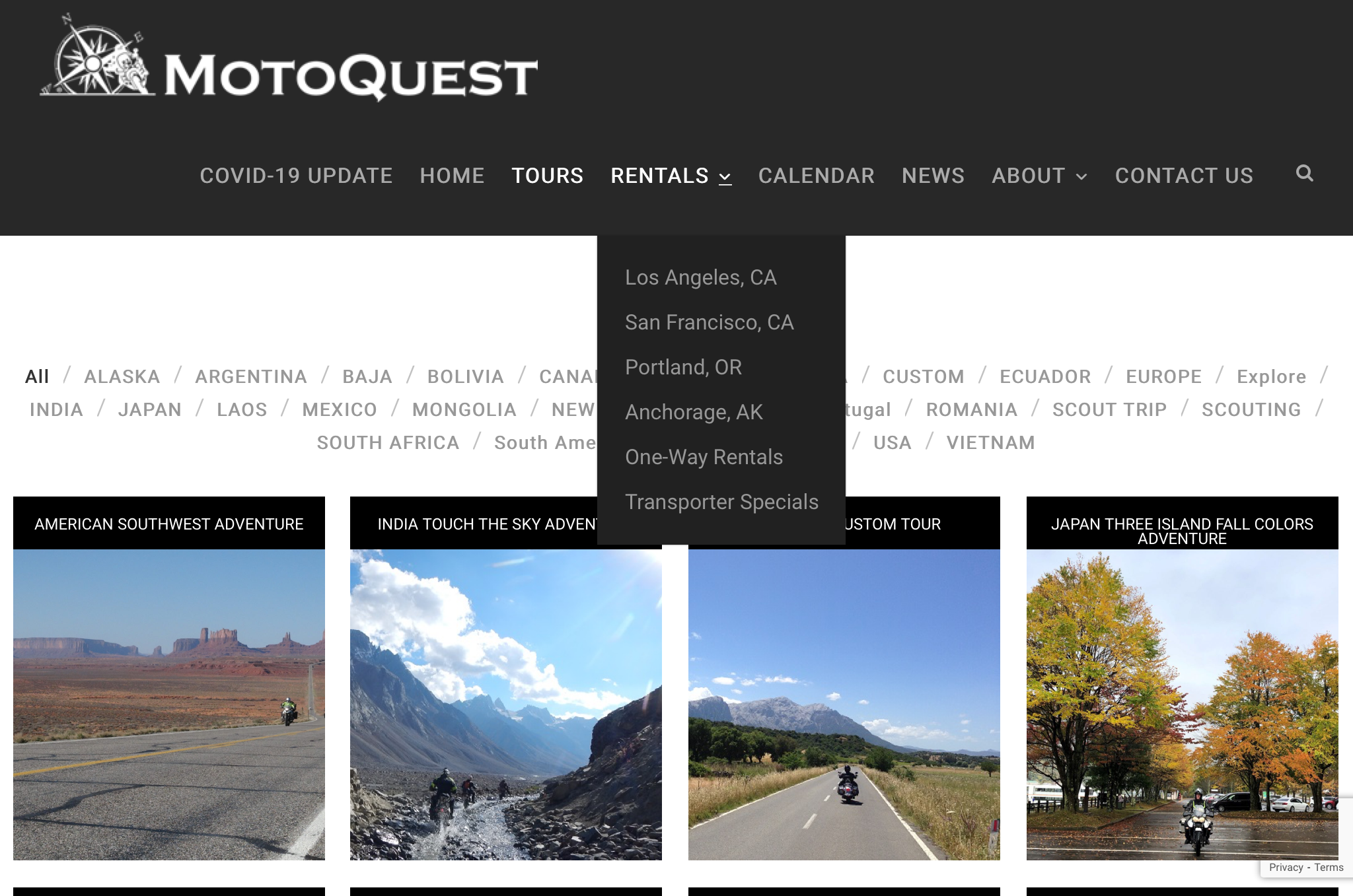 MotoQuest also Rents motorcycles. Many different brands and models. They have rental locations on the west coast of the USA in Los Angelas, San Francisco, Portland, and Anchorage. If you’ve ever wanted to fly to the west coast or Alaska, pick up a motorcycle, and ride the Pacific Coast Highway or head to Prudhoe Bay, here’s your chance!