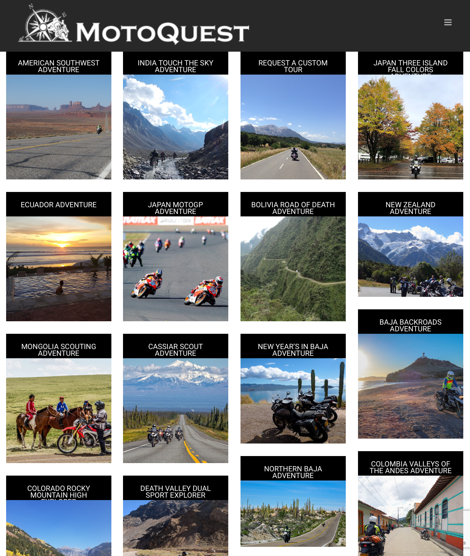 MotoQuest’s organized tours now run all through the year, in over 20 countries. Tours range from 7 to 17 days in length, and focus on motorcycle-centric events, bucket-list items, or extremes on the map. Tours run the gamut of adventure with lodging ranging from cushy to spartan, and from easy to technical riding depending on the location. Custom tours have become an integral part of MotoQuest’s repertoire, and we have been taking custom groups to unique destinations all around the world.
