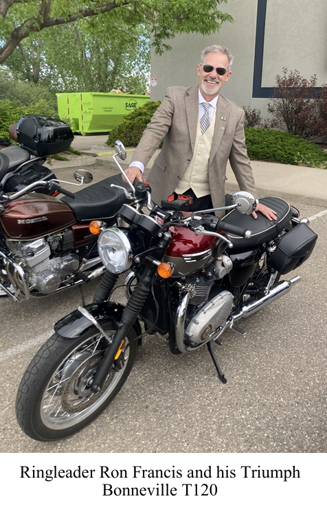 Sunday, May 19, 2024, 52 riders queued up between 09:00 and 10:00 at Northern Colorado Powersports, 1303 Frontage Rd, Fort Collins, CO, for the 13th annual (and my second) DGR. I arrived later than I planned, and the dealership’s parking lot was jammed with cool motorcycles and gentlemen (and ladies) looking very distinguished. Our ride host, Ron Francis, was speaking into a handheld loudspeaker, explaining the day’s schedule, ride routes, and how we planned to get through several busy intersections in Fort Collins, safely, as I joined the throng of participants. MSTA member Bryan Owens greeted me and introduced me to Ron Francis’ wife Karen. (Bryan and Debbie Owens and Ron and Karen Francis are neighbors.)