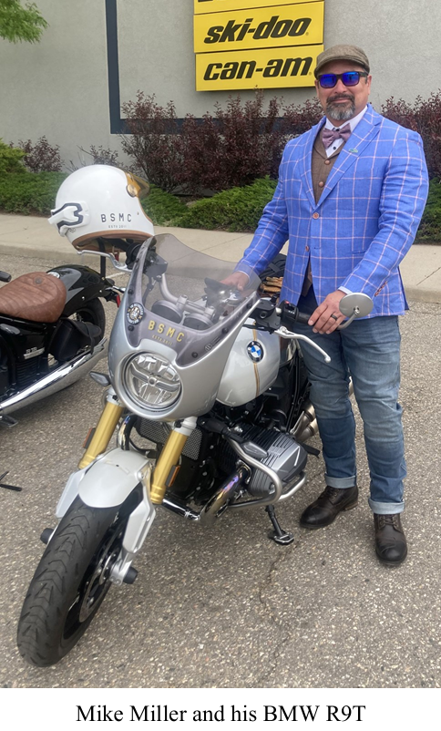 Some of the more interesting people and motorcycles gathered: Eric Hansen on a Royal Enfield Continental GT 650, Mike Miller on a BMW R9T, Rusty Batman on a ‘77 Honda CB750A, Georg Hoehn on a Triumph Bonneville T214 Special Edition (this bike commemorates Johnny Allen and his record-breaking run of 214.40 mph piloting the Triumph-powered Texas Ceegar streamliner at the Bonneville Salt Flats in 1956. The Bonneville T214 features an 865cc parallel twin engine and had a limited production run of 1,000 units with each bike individually numbered), Martin Bates on his Bonneville T100, Gregg Meisinger on an Indian Scout, and our own Bryan Owens on his gorgeous ’76 BMW R90S with a smoke paint job.