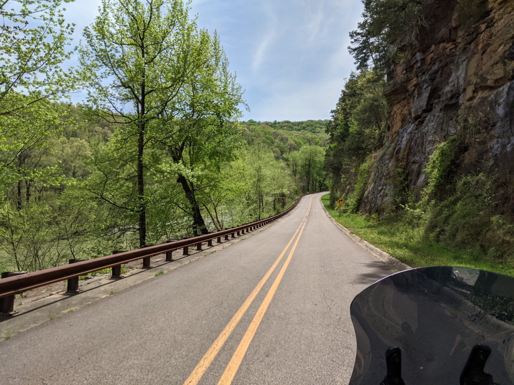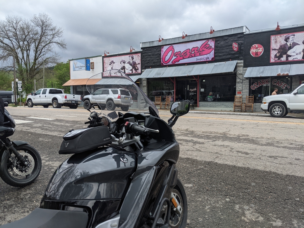 Saturday morning started off the same way that Friday did, however there was good news. The radar said that by 10am the clouds would part and the rain would stop. We ate a quick breakfast at the hotel. This time the radar was correct. A group of us geared up and hit the road. The location was Jasper Arkansas and the quant little eatery called the Ozark Cafe. We took the long way round, even getting to turn things up a little on AR 16 as the roads dried. It was a nice spirited ride to lunch.