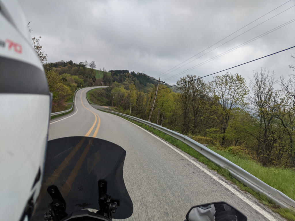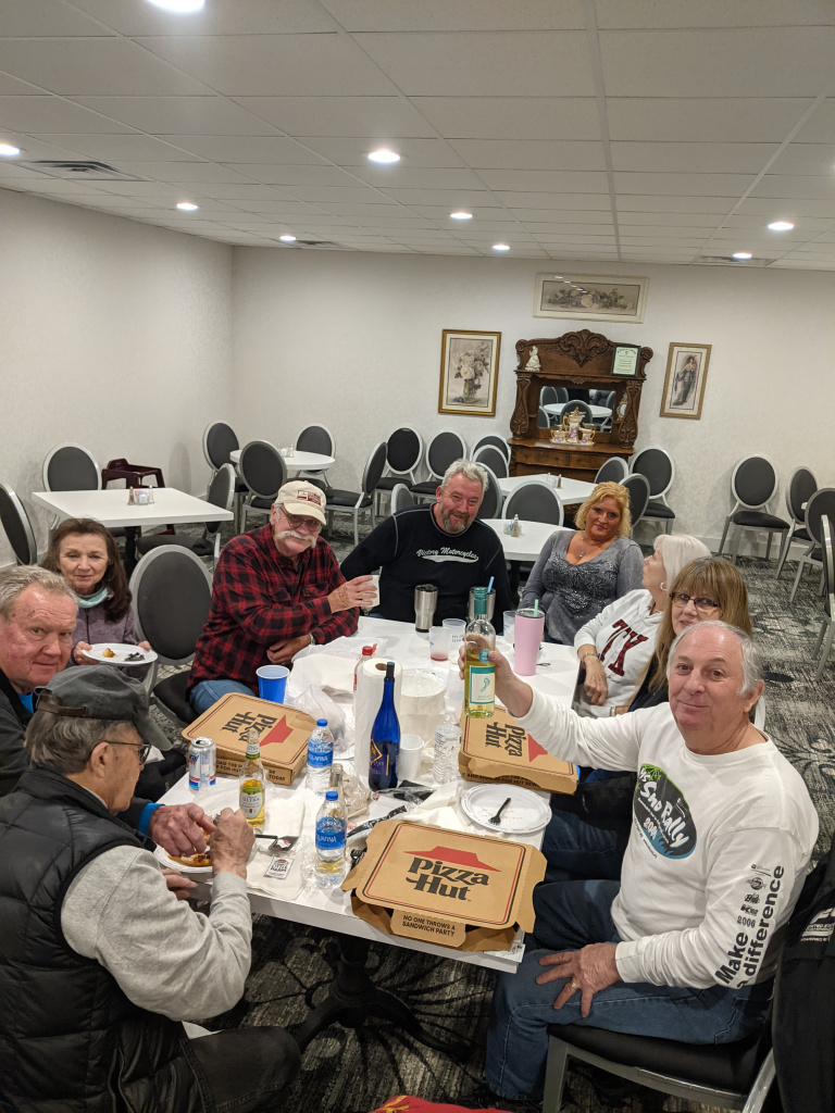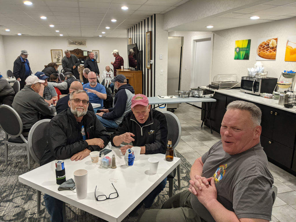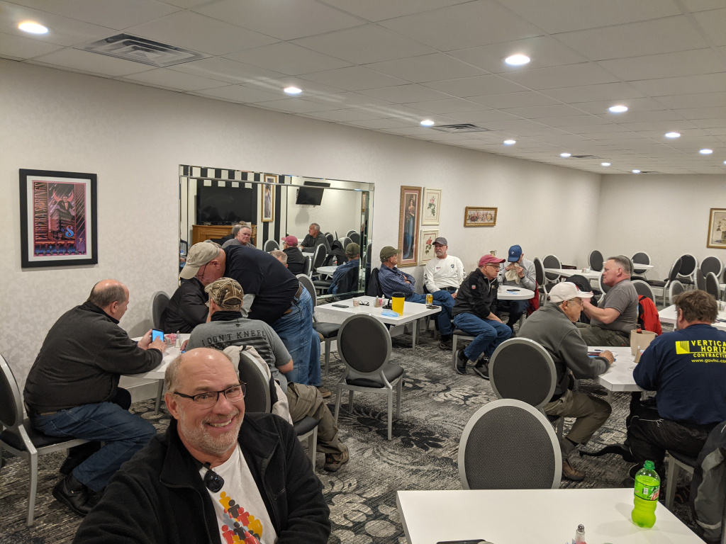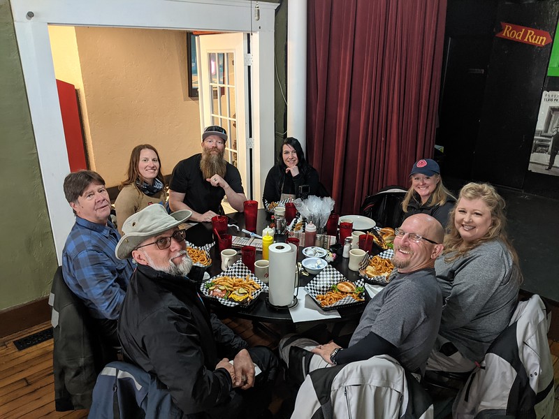 After lunch we went back to the hotel and spent the afternoon and evening chatting with friends. The place was packed and we counted over 35 riders hanging out. We all ordered pizza later in the evening. It was so cool, hearing the room filled with motorcycle stories, laughs and riders just enjoying hanging out with like minded folks. It was a fantastic evening! Come to find out, a lot of the group got some miles in as they rode in away from the rain. Some even took off later and enjoyed the routes that were provided. It was not a lost day and the rest of the weekend looked to bring more of the same.