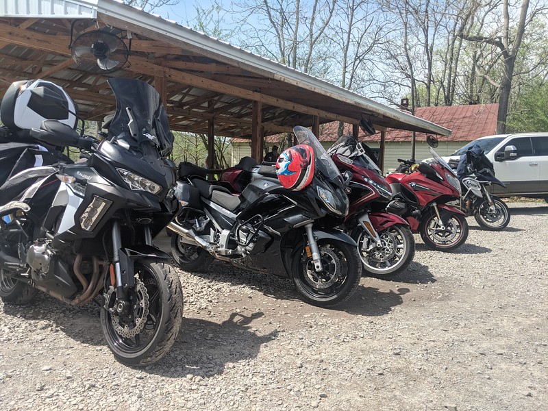 We have been planning this event, since the day we had to cancel last years ride. The day was finally here and the riders had spoken. As we rode off Thursday morning to meet some friends at the Oark Cafe, the Ozark Escape had over 74 riders signed up from 11 different states with riders coming from far away places like Minnesota, Wisconsin and Ohio. It was setting up to be a great weekend. The weather was beautiful, if not a little cold as we took off. We met up with John from Cincinnati at our local departure lounge, then road down the the Ozark Cafe. The weather and the roads did not disappoint. We rolled into the Cafe to be greeted by Jim from Bixby OK riding his beautiful Goldwing. Within 10 minutes, David, Bob and Yeeha all rode up. Just seeing old and new friends with smiles on their faces made my morning!