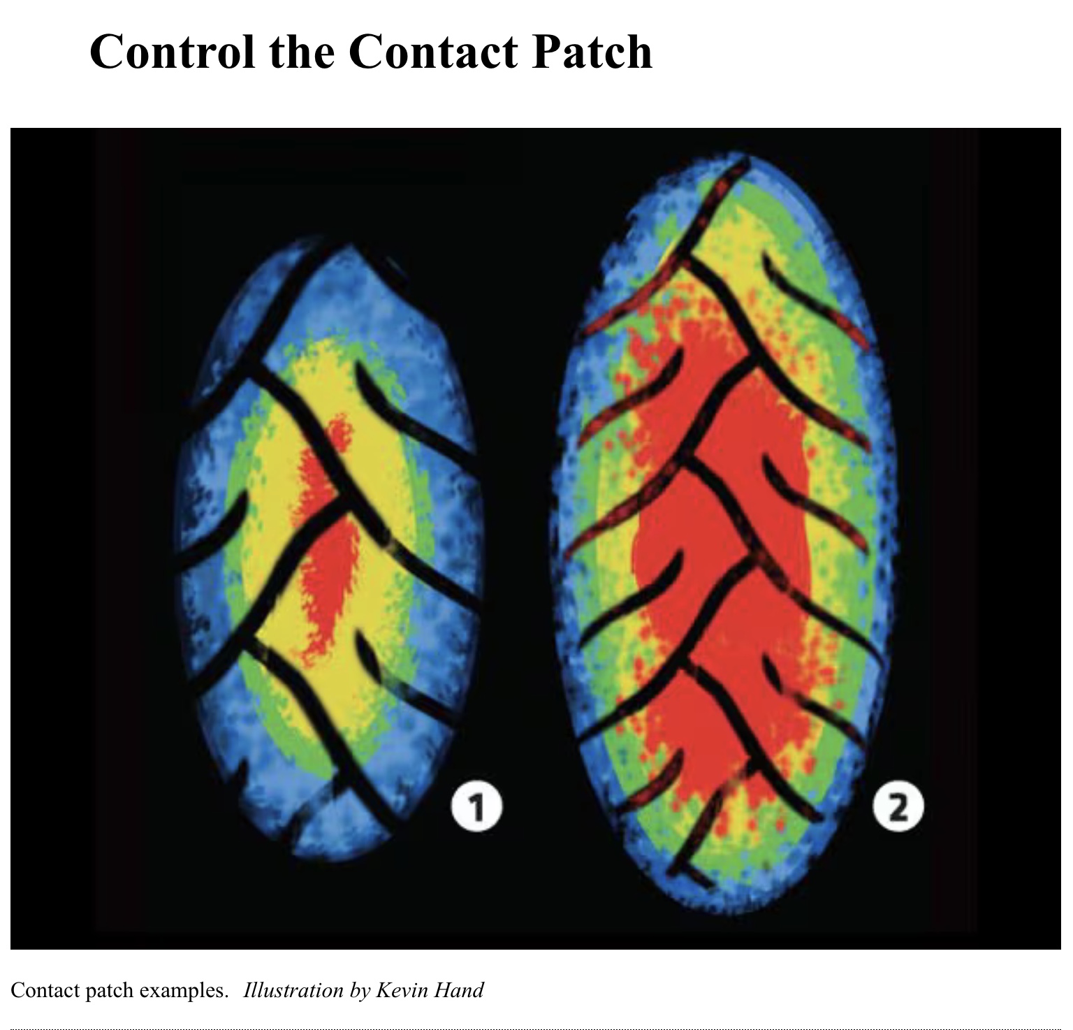 OF THE TWO tires above, which has more grip? Correct, #2. More rubber touching the road is more grip. And the best riders in the world are constantly working to be riding on #2. You can, too.