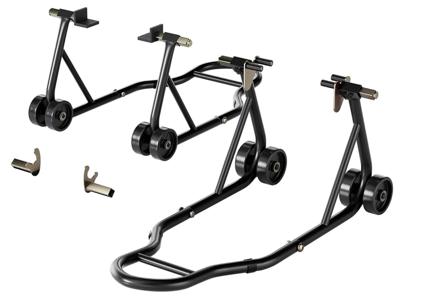 4) Motorcycle stands of some sort. Now that most modern motorcycles don’t feature a center stand as standard, an external stand is usually an essential addition to your garage. A stand is necessary to raise your wheel off the ground for chain oiling and cleaning, tire checks and repair, working on the brakes, wheel removal, and to hold your bike upright for oil changes and other maintenance. Before these were readily available, I made do with a floor jack and a block of soft wood. But there was always the fear of the bike falling off the jack and also the fear of possibly denting whatever I was using for a lift point. A good rear stand at the very least makes these moot points. A front stand, in addition to the rear stand, makes wheel removal much easier and safer. They also come in handy when you want to clean your bike!