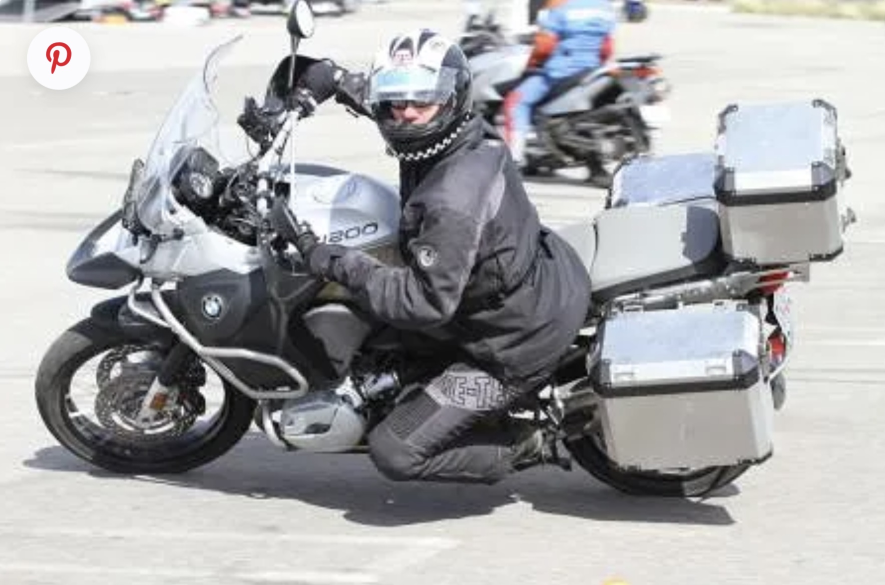 This pic catches me at a moment of far less than ideal form. I’m looking straight ahead, my inside arm is stiff, my body’s centerline is too close to the centerline of the bike. Performing under the watchful eye of instructors made me self-conscious.