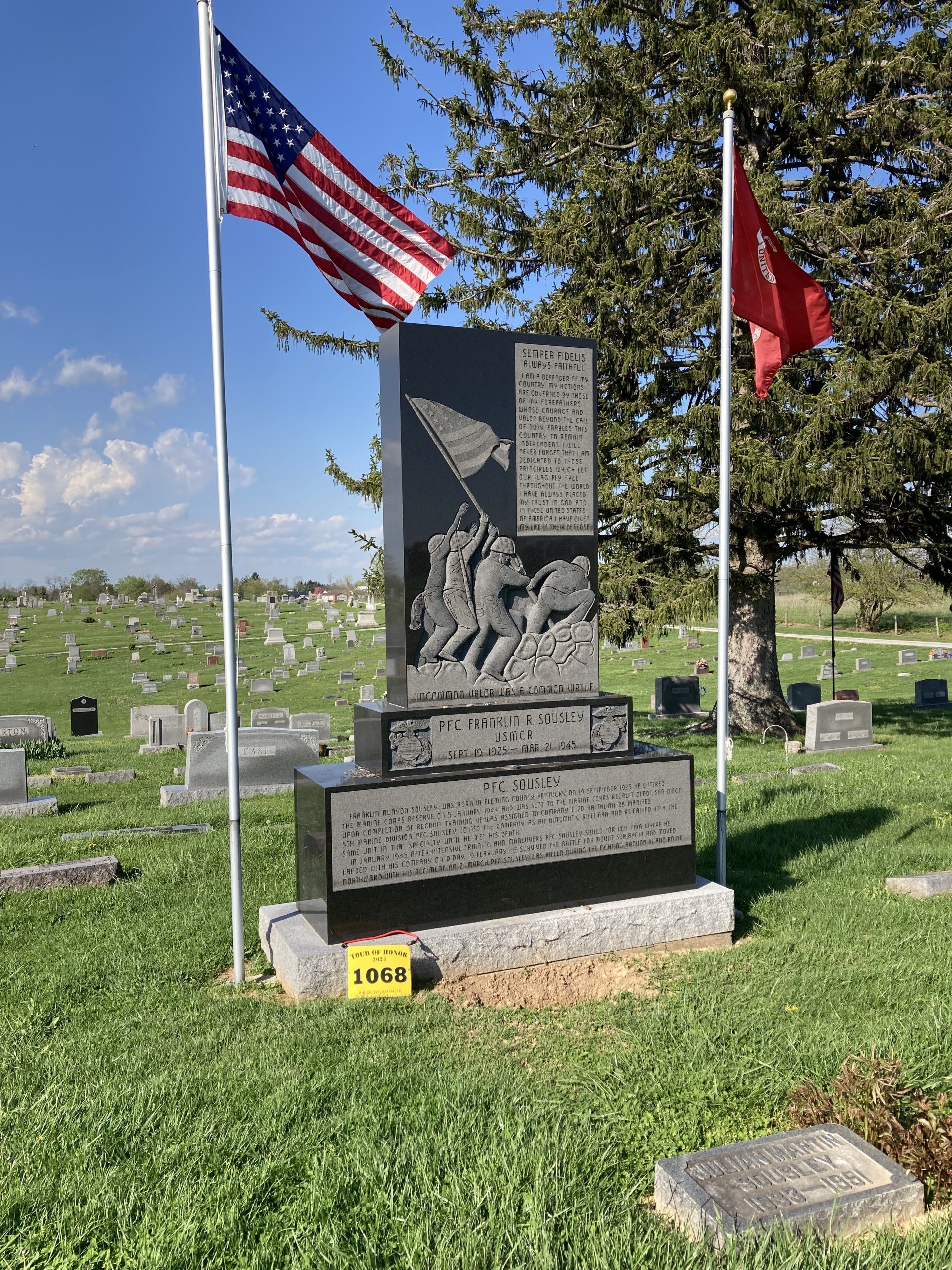 This one was a little different than all the rest. This is the Grave site of PFC Franklin R Sousley. He was one of the flag raisers on Iwo Jima in WWII.