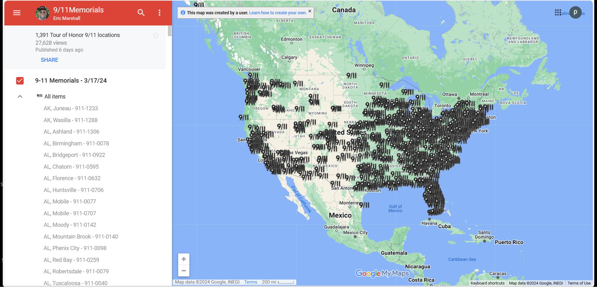 If you choose for example the 9/11 Memorials, you simply click on the link and see this: