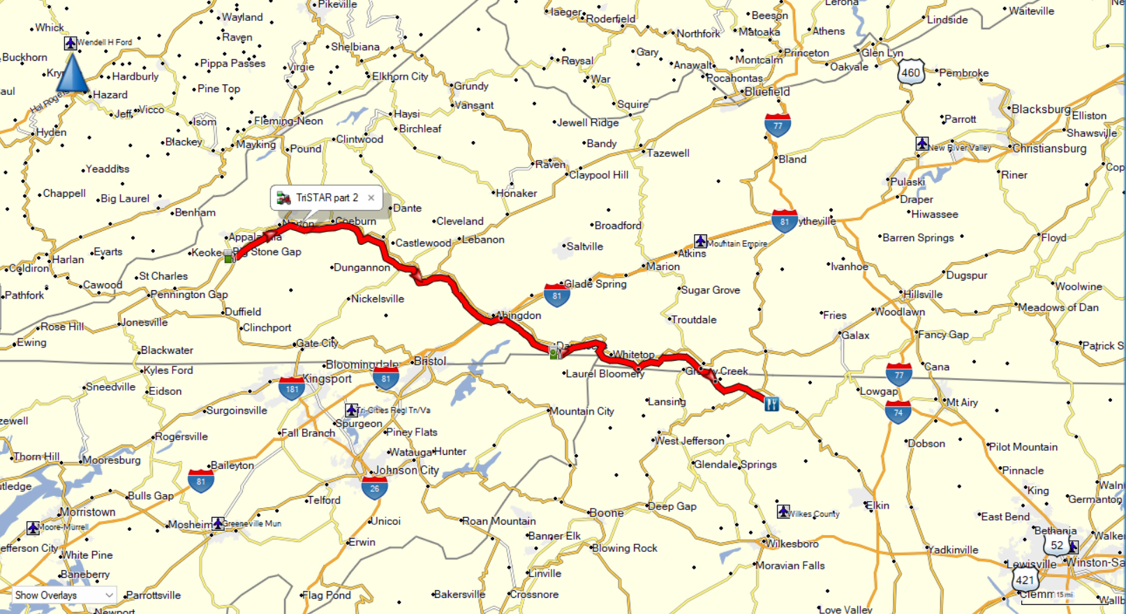 The 1st part of the route to TriSTAR is to head straight south through northern Kentucky to Winchester, east of Lexington, picky up the Mountain Parkway heading east for a little bit, and then take 15 south for quite a way until just south of Harlin, Kentucky. We then cut off of 15 through some smaller 3-digit roads to Cumberland, Ky where we pick up route 160 for a great ride up and over Black Mountain into southwest Virginia. This bottom part of the morning route is spectacular. Great twisty mountain roads, almost no traffic, and wonderful pavement the whole way. Our destination was Curklin’s, a great down-home type of restaurant in Big Stone Gap, Virginia. I recommend it and the French Toast BLT highly! YUM! We had put off our departure from home slightly which resulted in us getting there mid-afternoon.