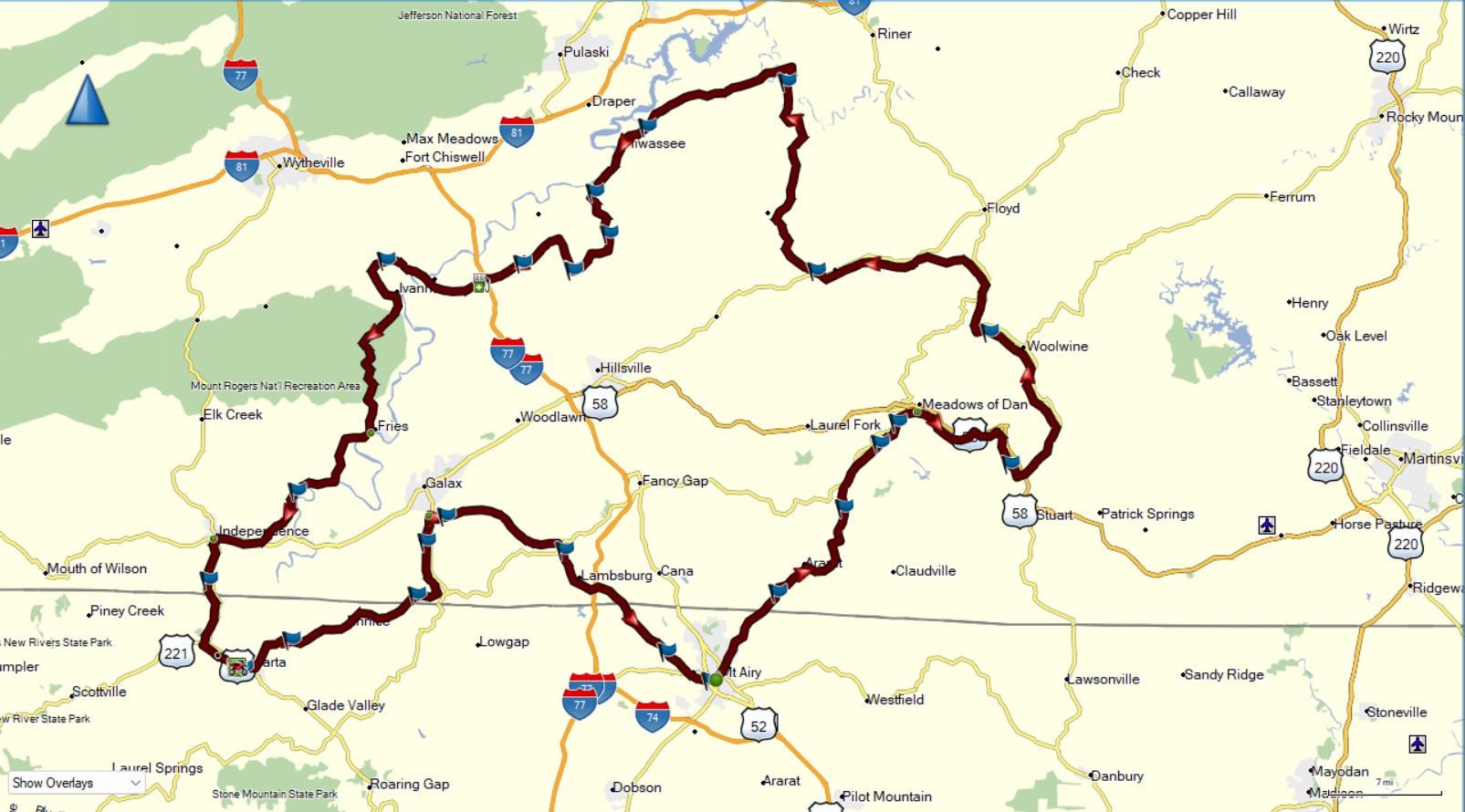 This would include us getting into Mt. Airy, NC. the hometown of one Sheriff Andy Taylor of Mayberry fame. It would also take us to Tuggles Gap where a stop in the store/restaurant/hotel was in order. After that it takes us through Indian Valley before bringing us back to Independence, Va and then south to Sparta.