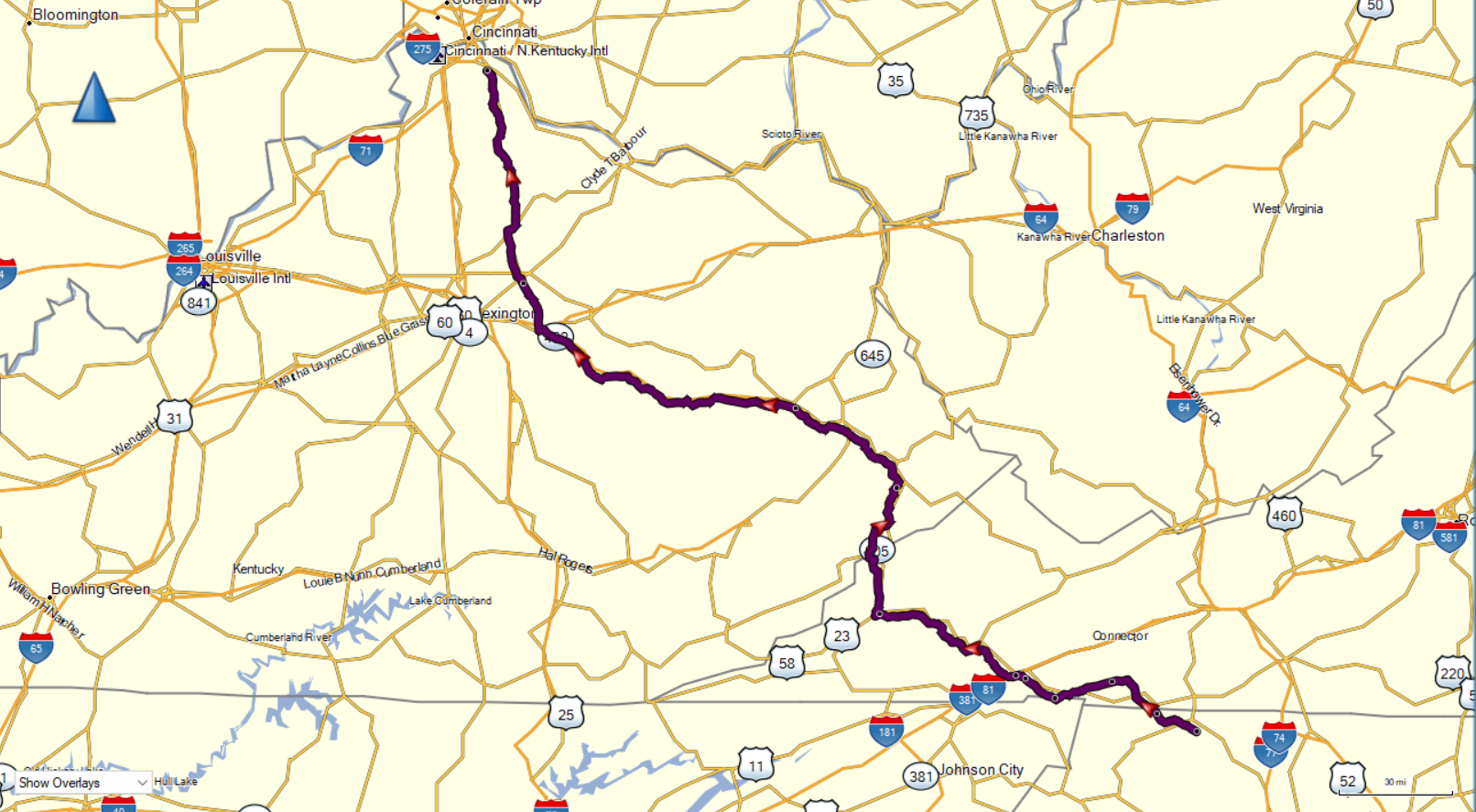 Sunday morning for us meant that we had to head home. We had been watching the weather and had been made aware by our family and friends back home in Cincinnati that a VERY STROBG chance of SEVERE weather was forecasted to arrive in that area sometime between 2 and 3 pm on Sunday afternoon. We had 350+ miles to get there, about 6-7 hours of travel time we figured. It did look like that we would have completely clear skies the whole distance IF we could leave early enough and get there soon enough. So we left at 6:45 Sunday morning. As promised the sky was completely clear of clouds, but we did have some early morning fog to run through. Since we were under a time crunch, we decided that using the most direct route was our best plan. This meant a lot of 4 lane divided highways going through SW Virginia and eastern Kentucky, and the Mountain Parkway from Pikeville west almost to Lexington, KY. It also meant limited stops. We stopped 3 times in this trip back home. Once in Abbington, VA for a quick McDonalds breakfast stop. Once in Pikeville, KY for gas and a bottle of water, and once in Winchester, KY for a splash of gas and to put rain gear on…..just in case we didn’t make it all the way home dry. By the time we got to Winchester the skies had cluded up and gotten considerably darker. We really weren’t sure how long we had but we knew it wouldn’t be long before the storm and we collieded. As it was, exactly 1 and 1/2 miles from my home we got the firt few drops of rain. By the time I had pulled into my garage and taken my ehlmet off, the skies opened up and rain was coming down very hard. Mike and Luis said that they had to ride for a couple of minutes in rain but that was all. 355 miles in 6.5 for an average overall speed of 55mph, including stops! Not bad. A little over 1300 miles for the whole trip over 5 days.