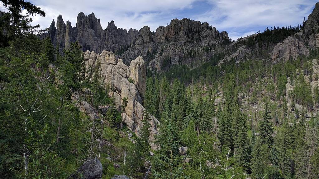 The mountainous terrain of the Black Hills National Forest is known for its abundance of ponderosa pines.