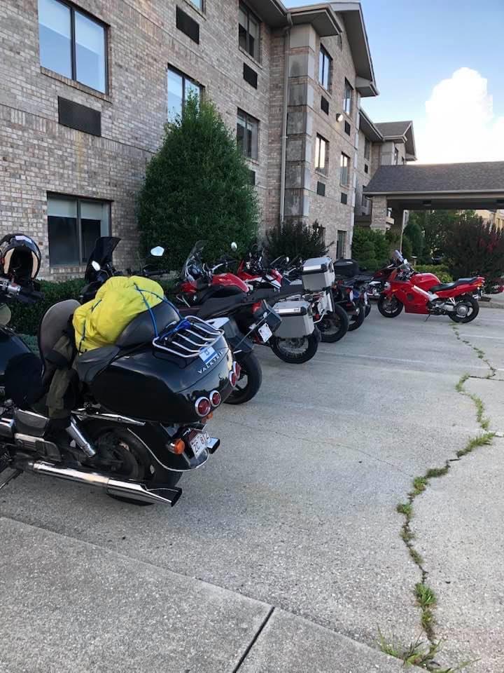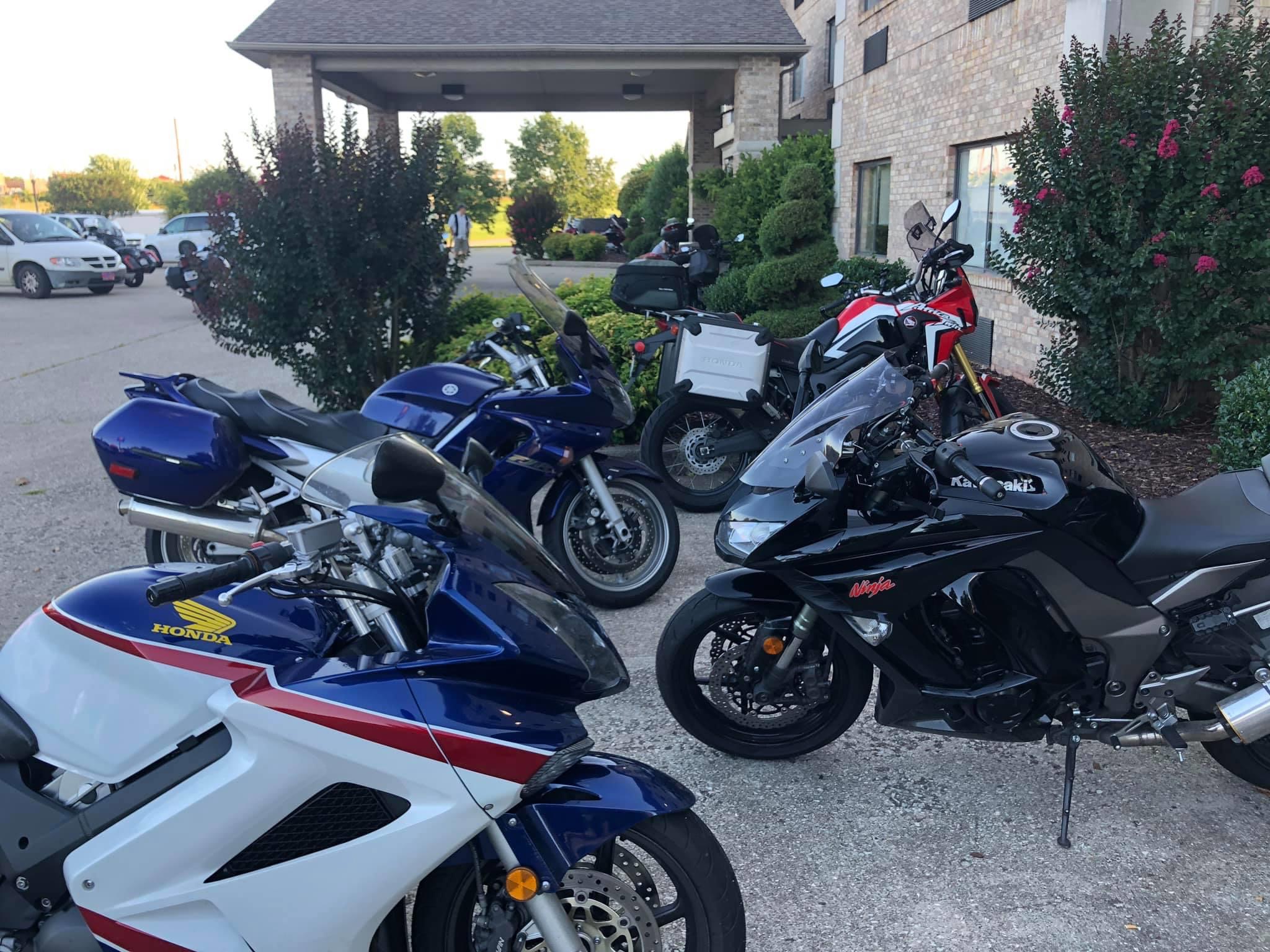 The always popular rear patio area is a perfect place to hang out during the evenings. It has plenty of space to spread out in, yet is private and shaded. The hotel allows our group to have the back patio and rear parking lot for our exclusive use. It allows the attendees to park their bikes in a secluded area that also allows them to mingle and “tire kick” without being in the way of traffic or other patrons.