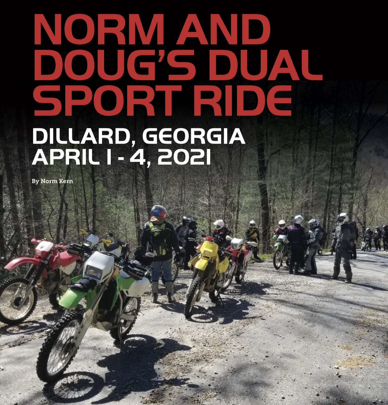 My “Sport-Touring” season started off with lots of fun at the MSTA Just-For-Fun Norm & Doug’s Dual-Sport ride at Dillard Georgia. We had about twenty riders, all of whom came prepared with capable bikes, riding gear, skill and experience. We didn’t know in advance how well things would go, as there was 1.5 inches of rain on Wednesday, and Thursday was COLD with the temperature