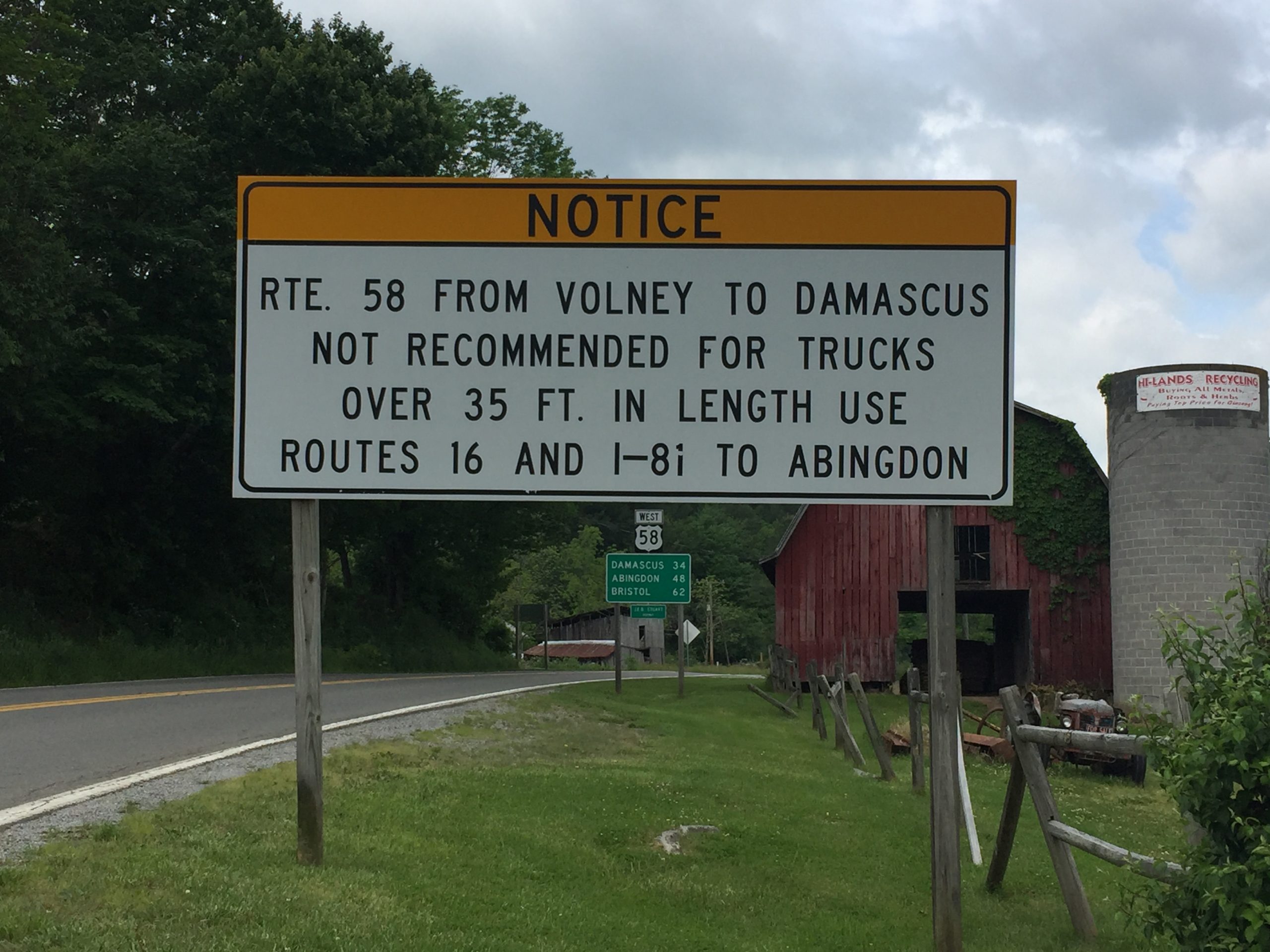 A few roads that I know cut us over to Route 58, which is known as The Crooked Road. But before you get to the real good part of it, you run through Damascus, VA. We stopped there for lunch at The Wicked Chicken, and old favorite of both of ours. After lunch we set out to run the length of 58 over to Mouth of Wilson and then back to the Inn. This is one of my favorite roads anywhere in the country.