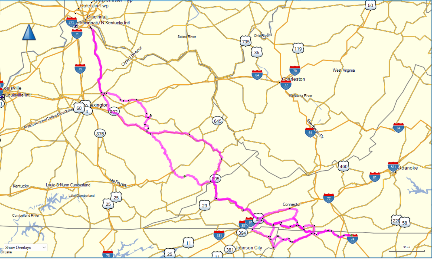 through its complete length, so I set up a route using routes 221 and 88 that took us over to 421 south of Mountain City, TN. From there we did 421 going north all the way to just below Bristol, TN.
